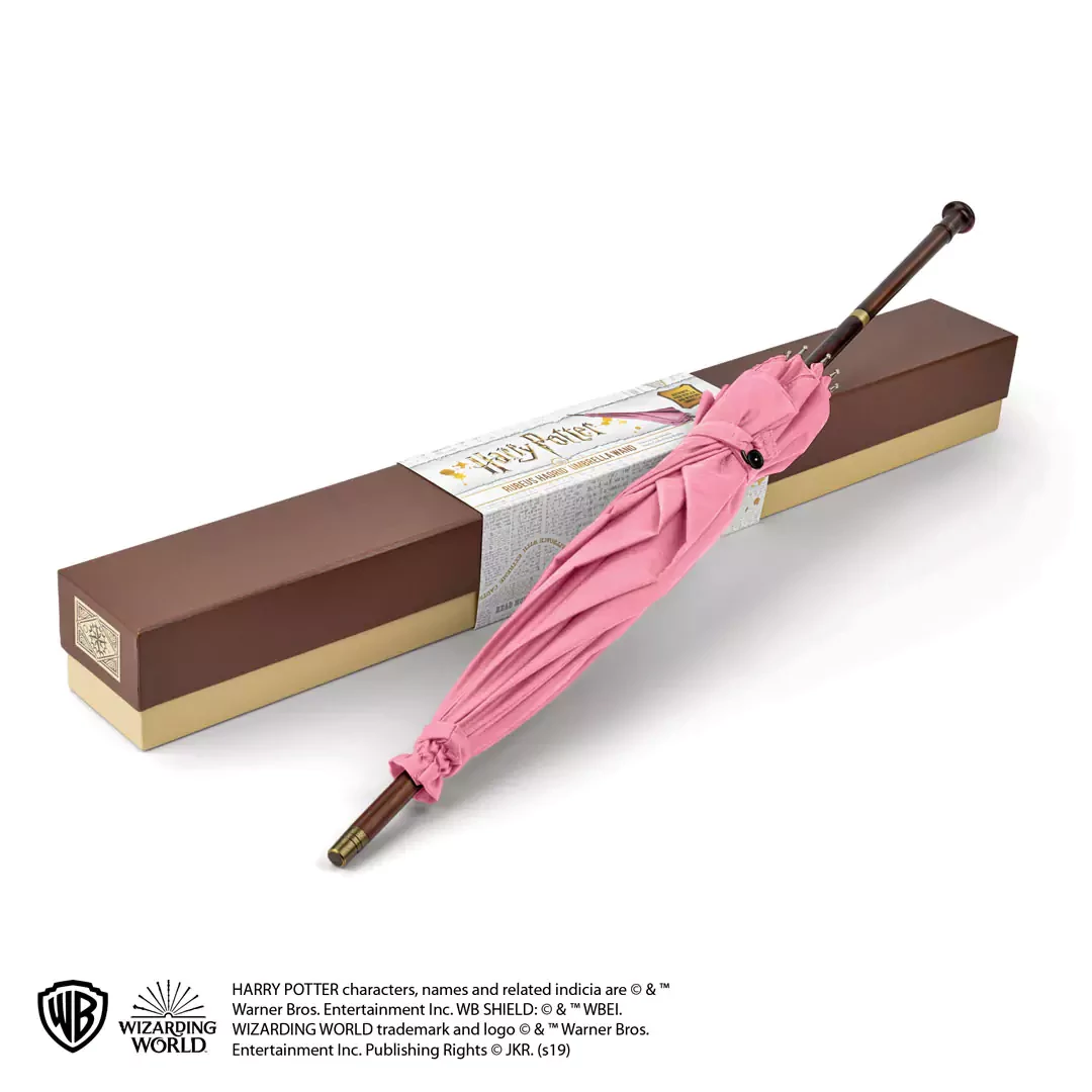 Hozd el otthonodba a varázslóvilág egyik legikonikusabb kellékét ezzel a gyönyörűen kidolgozott Harry Potter – Rubeus Hagrid rózsaszín esernyő pálca replikával! Ez a különleges darab hűen idézi Hagrid titkos pálcáját, amelyet az esernyő belsejében rejtett el – a filmekből ismert részletgazdag megjelenéssel.