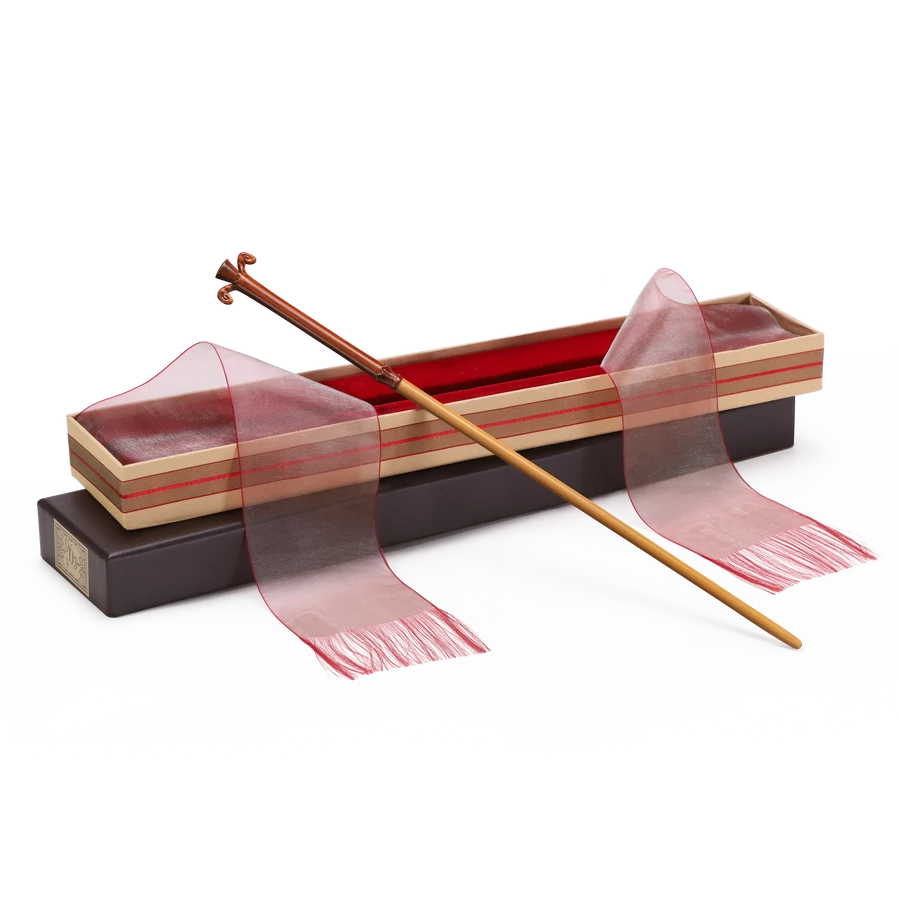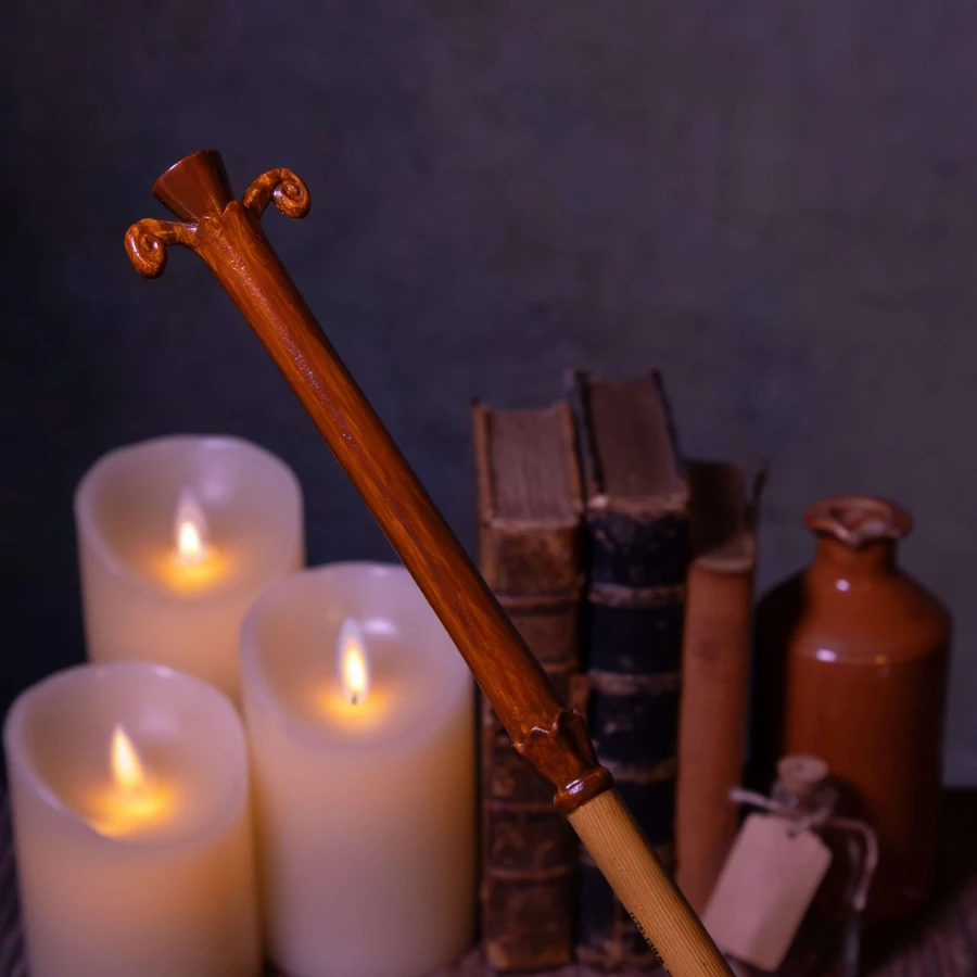 A pálca kézzel festett gyantából készült, és luxus kivitelű, bársonyos hatású belsővel bélelt Ollivander stílusú díszdobozban érkezik, finom, áttetsző szalaggal. Minden részletében hű mása a filmekben látott kelléknek.
